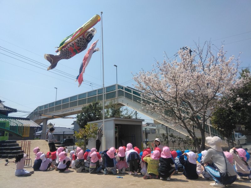 桜の花が満開となりました🌸そんな中、今日は園庭でこいのぼりをあげました、そして、お昼はお花見をしながら楽しみにしていたお弁当ランチ!みんなもりもりおいしそうに食べていました。おやつの桜餅も園庭でいただき、お花見日和の一日を楽しみました。