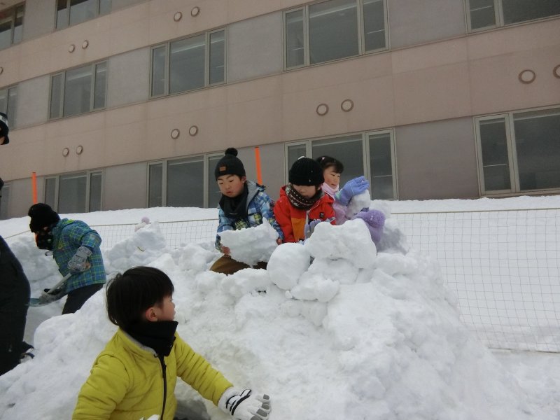雪も降っており、子ども大人共に雪景色を見て気分も高まり、いざ雪遊びへ!!