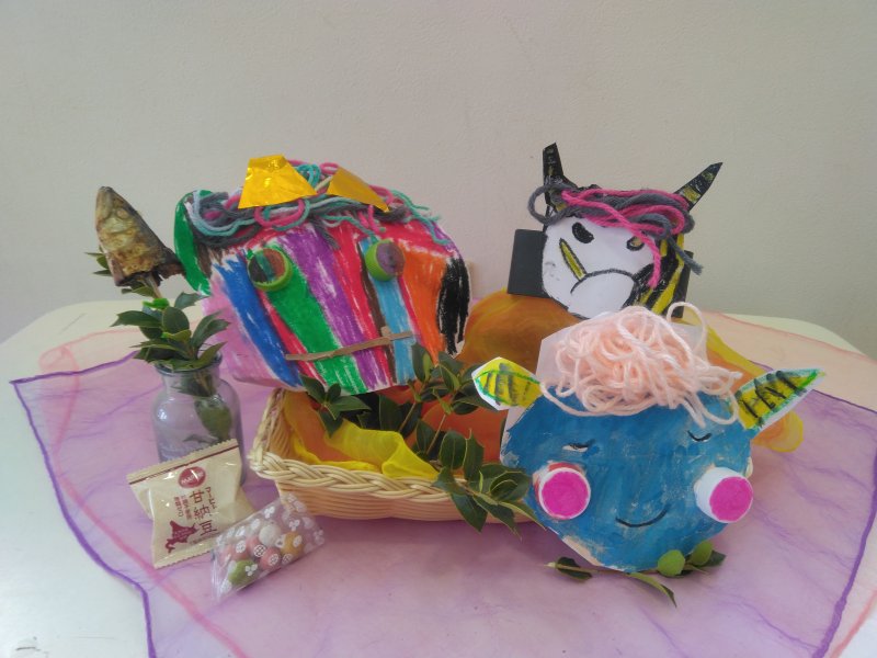 今日は、節分!おこりんぼう鬼、泣き虫鬼、片づけしない鬼、あきらめ鬼…。子どもたちは、心の中にいる鬼を、大きな声で豆まきして追い払いました。給食の恵方巻も、おいしかったね!!