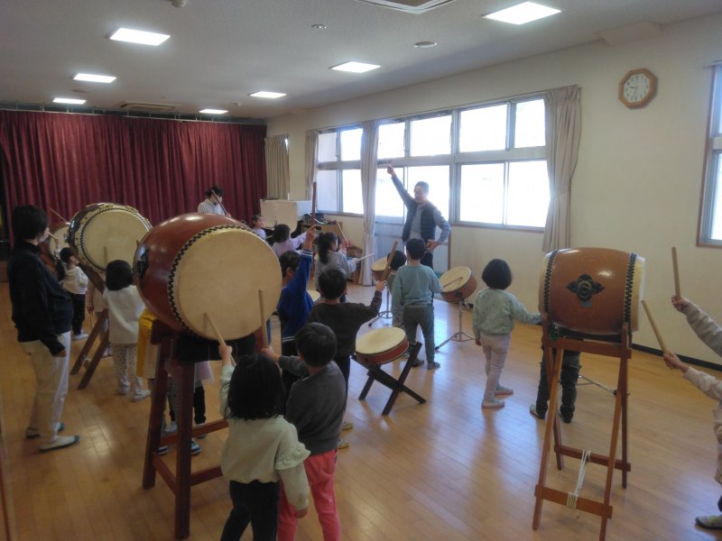 5歳児さんの太鼓最後の日でした。4歳児さんに教えてあげる姿がとても頼もしかったです!元気いっぱいのすみれ太鼓は、きっと4歳児さんに引き継がれていくことと思います。先生、1年間、温かいご指導ありがとうございました。